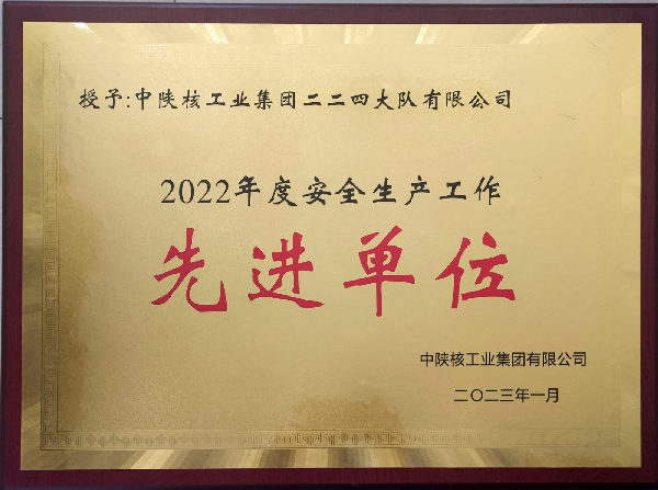 中陜核工業(yè)集團有限公司2022年度安全生產(chǎn)先進單位