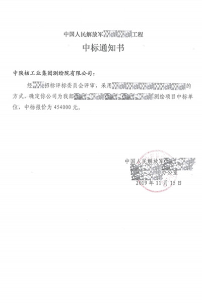 [2019-11-22]測繪院成功中標(biāo)中國人民解放軍某部軍用土地測繪項目9月15日傳來捷報,中陜核工業(yè)集團(tuán)測繪院有限公司在中國人民解放軍某部軍用土地測繪項目招標(biāo)中,憑借過硬的技術(shù)、嚴(yán)謹(jǐn)?shù)淖黠L(fēng)、豐富的經(jīng)驗、合理的報價,在眾多企業(yè)中脫穎而...