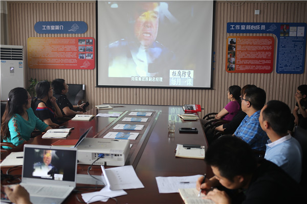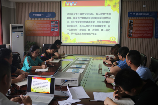 [2019-07-22]機關(guān)黨支部召開黨員大會推進主題教育再深入由于近期公司人事調(diào)整,7月18日,機關(guān)黨支部在四樓會議室召開了黨員大會。會議宣讀了公司黨委任命閆妮同志為機關(guān)黨支部書記的通知,閆妮本人作了表態(tài)發(fā)言,新選舉了支部委...