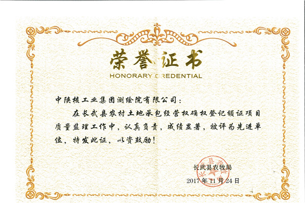 [2017-11-30]中陜核測(cè)繪院有限公司長(zhǎng)武縣監(jiān)理項(xiàng)目榮獲表彰11月24日,中陜核測(cè)繪院長(zhǎng)武縣農(nóng)村土地承包經(jīng)營(yíng)權(quán)確權(quán)登記頒證監(jiān)理項(xiàng)目被長(zhǎng)武縣農(nóng)牧局授予先進(jìn)單位榮譽(yù)稱(chēng)號(hào)。榮譽(yù)既是對(duì)測(cè)繪院工作的肯定,又增強(qiáng)了全體項(xiàng)目人員打造優(yōu)質(zhì)項(xiàng)...