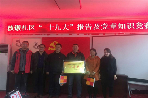 [2017-12-01]物業(yè)管理中心黨支部榮獲核鍛社區(qū)“十九大” 報(bào)告及黨章知識(shí)競(jìng)賽...11月29日下午,灞橋區(qū)灞橋街道核鍛社區(qū)舉辦了十九大報(bào)告及黨章知識(shí)競(jìng)賽,二二四物業(yè)管理中心黨支部3名黨員在黨支部書(shū)記的帶領(lǐng)下參加了此次競(jìng)賽。 比賽現(xiàn)場(chǎng)氛圍熱烈,參賽...