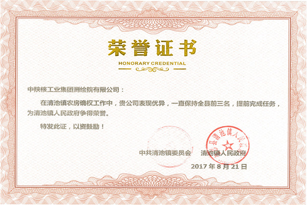 [2017-08-25]中陜核工業(yè)集團(tuán)測繪院有限公司貴州清池項(xiàng)目再獲榮譽(yù)5月31日,中陜核工業(yè)集團(tuán)測繪院有限公司清池項(xiàng)目部先后完成了清池鎮(zhèn)政府、國土局、不動產(chǎn)登記中心局、縣政府的考核指標(biāo),將清池鎮(zhèn)農(nóng)房確權(quán)工作推進(jìn)到了全縣第一名。6月30日...