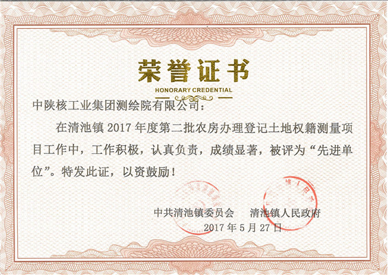 [2017-08-23]中陜核測繪院貴州清池項(xiàng)目獲通報(bào)表彰5月27日,中陜核測繪院貴州省金沙縣清池鎮(zhèn)第二批農(nóng)房辦理登記土地權(quán)籍測量項(xiàng)目獲通報(bào)表彰。 自項(xiàng)目實(shí)施以來,全體項(xiàng)目職工以認(rèn)真負(fù)責(zé)的工作態(tài)度、嫻熟的業(yè)務(wù)技術(shù),嚴(yán)把質(zhì)...