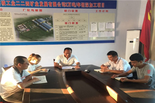 [2017-08-11]第十黨支部開展主題黨日活動根據(jù)第十黨支部年初工作計(jì)劃和《主題黨日活動實(shí)施方案》, 8月10日,礦業(yè)發(fā)展公司黨支部結(jié)合工作實(shí)際,在潼關(guān)2萬噸∕年鉬深加工項(xiàng)目部組織開展了黨日活動。 陳書記以《堅(jiān)...
