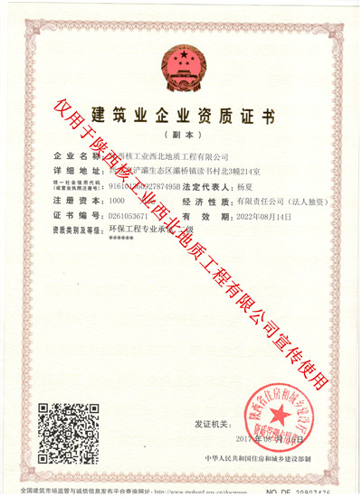 [2017-08-22]地質(zhì)工程公司環(huán)保專業(yè)承包資質(zhì)成功升二級8月17日,經(jīng)陜西省住房和城鄉(xiāng)建設(shè)廳批準(zhǔn),陜核西北地質(zhì)工程公司環(huán)保專業(yè)承包二級資質(zhì)成功升乙。 資質(zhì)升級工作是地質(zhì)工程公司今年重點(diǎn)工作之一,自2017年6月進(jìn)入籌備階段...