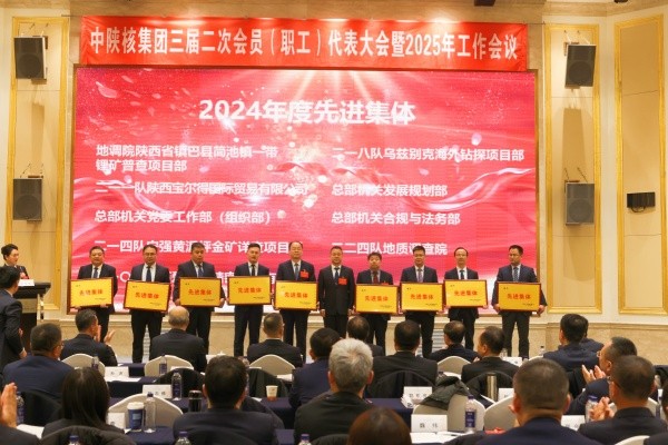 近日,中陜核工業(yè)集團(tuán)召開了三屆二次會員(職工)代表大會暨2025年工作會,會上表彰了先進(jìn),公司捷報頻傳,連續(xù)榮獲多項(xiàng)榮譽(yù)!公司榮獲了中陜核集團(tuán)2024年度“創(chuàng)新創(chuàng)業(yè)獎”,公司黨委書記、董事長郭金鎖榮獲中陜核集團(tuán)2024年度“優(yōu)秀管理者”稱號,中陜核新材料有限公司榮獲中陜核集團(tuán)2024年度“精益管理獎”,地質(zhì)調(diào)查院榮獲中陜核集團(tuán)2024年度“先進(jìn)集體”和“安全環(huán)保先進(jìn)集體”,地質(zhì)調(diào)查院《陜西省略陽縣硤口驛銅多金屬礦普查》榮獲中陜核集團(tuán)2024年度“核地質(zhì)工作優(yōu)秀成果二等獎”,地質(zhì)調(diào)查院《陜西省商南縣鳳凰寨地區(qū)鋰鈹?shù)认∮薪饘俚V普查》榮獲中陜核集團(tuán)2024年度“核地質(zhì)工作優(yōu)秀成果三等獎”,地質(zhì)調(diào)查院總工程師雷旺勝、中陜核新材料有限公司氧化鉬車間主任劉建文、中陜核工業(yè)集團(tuán)測繪院有限公司規(guī)劃中心副主任袁晨鑫榮獲中陜核集團(tuán)2024年度“先進(jìn)個人”稱號,中陜核工業(yè)集團(tuán)測繪院有限公司副總經(jīng)理王亞光、地質(zhì)調(diào)查院項(xiàng)目負(fù)責(zé)卞利榮獲中陜核集團(tuán)2024年度“安全環(huán)保先進(jìn)個人”稱號,地質(zhì)調(diào)查院《陜西省略陽縣硤口驛銅多金屬礦普查》項(xiàng)目陳偉男、劉雷、陳輝、劉彤旭、黃家瑄,《陜西省商南縣鳳凰寨地區(qū)鋰鈹?shù)认∮薪饘俚V普查》項(xiàng)目李雷、李剛、程佳孝、馬總戰(zhàn)、張浩軒榮獲中陜核集團(tuán)2024年度“核地質(zhì)工作先進(jìn)個人”稱號。