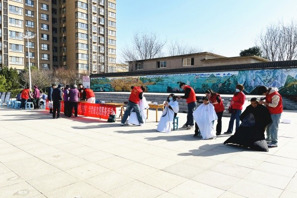 活動現(xiàn)場,各類便民利民志愿服務點位有序排開,全方位滿足居民群眾需求。愛心義剪區(qū)的現(xiàn)場人頭攢動,大家在工作人員的引導下有序等位排隊,5位理發(fā)師手持剪刀,耐心細致地詢問每一位群眾的需求,精心為大家剪出最心儀的發(fā)型?!斑@里留長,這里剪短……”在溝通中完成了大家的“私人訂制”發(fā)型,贏得了陣陣稱贊。
