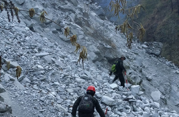 1月29日,陜西核工業(yè)西北測繪院墨脫項目在艱苦的環(huán)境中,歷經(jīng)135天不懈奮斗,圓滿完成工作任務勝利歸隊。 墨脫縣是我國最后一座通公路的縣城,加熱薩鄉(xiāng)、甘登鄉(xiāng)是全國最后通公路的鄉(xiāng)鎮(zhèn)。測繪院墨脫項目就承擔著全國最后一條鄉(xiāng)鎮(zhèn)公路的設計測繪工作,對工程的順利施工、當?shù)鼐用褡叱龃笊骄哂兄匾饬x。項目地處西藏西南,即雅魯藏布江大峽谷腹地,零散分布著門巴族、珞巴族與藏族部落,直線距離印度約30公里,區(qū)域自然環(huán)境、民風民貌依然保持原始狀態(tài),給測繪施工帶來了技術(shù)、工作環(huán)境和語言交流的極限挑戰(zhàn)。 考慮到施工情況的特殊性,測繪院抽調(diào)了最年輕的骨干力量,項目組平均年齡不到25歲,大部分是90后。從生活優(yōu)越的平原地區(qū)來到條件艱苦的西藏高原,項目組11人埋頭苦干,沒人叫苦喊累。工作區(qū)懸崖峭壁林立,干活時要用安全繩把人吊下去才能測量,被吊下去的人既要拿著儀器操作,還要防止周圍滾落的石頭,大家都是捏著一把汗;過河就更危險了,臨時用木頭搭建的木橋很容易滾動,一不小心就會掉進湍急的河水;由于項目路線長,中間部分沒有村落,大家只有背著帳篷干活,沒有吃飯的地方,就用水壺燒點開水泡幾包方便面,或者啃個壓縮餅干把肚子哄飽。為了加快工作進度、保證數(shù)據(jù)的準確性,控制點靜態(tài)聯(lián)測的時候,項目組將筆記本電腦背上隨時檢驗數(shù)據(jù)的準確性、完整性。在高差近1000米的路途,人累得甚至于不想戴手套以減輕負重,但他們還是毅然扛上“沉重”的筆記本電腦,以嚴謹?shù)墓ぷ鲬B(tài)度為項目質(zhì)量提供了保障。