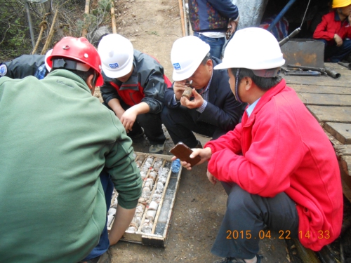 華陽川項(xiàng)目負(fù)責(zé)康清清首先從目前野外施工進(jìn)展、取得的成果認(rèn)識及下一步工作安排等方面做了詳細(xì)匯報。聽取匯報后,專家們來到野外現(xiàn)場,實(shí)地檢查了地質(zhì)剖面的測量情況,結(jié)合地質(zhì)現(xiàn)象,提出了寶貴意見;在鉆探施工現(xiàn)場,專家們認(rèn)真查看了鉆孔巖芯,詳細(xì)詢問了鉆探施工和鉆孔地質(zhì)情況,同時要求項(xiàng)目人員在日常施工中必須做好技術(shù)質(zhì)量的把關(guān)和監(jiān)管工作。