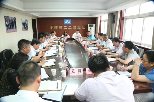 6月14日,中陜核集團(tuán)副總經(jīng)理兼總工程師王建國、總會計(jì)師劉書靈、副總工程師譚憲林、發(fā)展規(guī)劃部部長穆長偉、資產(chǎn)財(cái)務(wù)部部長唐小明、人力資源部副部長薛春芳、地質(zhì)勘查部副部長方民強(qiáng)、發(fā)展規(guī)劃部副部長劉躍華一行8人,到二二四大隊(duì)有限公司檢查指導(dǎo)測繪、鉆探兩支專業(yè)化隊(duì)伍建設(shè)情況。王總主持召開座談會,二二四大隊(duì)有限公司班子成員、陜核西北測繪院、地質(zhì)工程公司及有關(guān)部門負(fù)責(zé)人參加了會議。