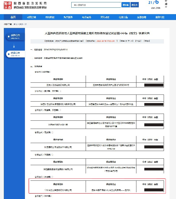 6月,以合肥建設(shè)工程監(jiān)測中心工程檢測業(yè)務(wù)合作單位入圍為良好開端,中陜核工業(yè)集團測繪院有限公司頻傳入圍、中標喜訊,成功中標3個項目,分別為渭南合陽風電項目勘測定界及報批技術(shù)服務(wù)、大荔縣農(nóng)村集體土地所有權(quán)確權(quán)登記發(fā)證項目、2023年煤礦超層越界項目。