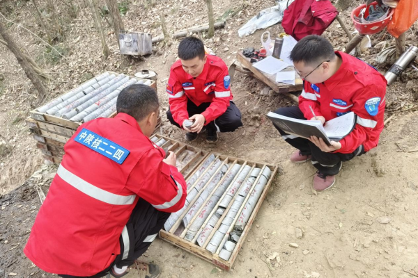 李家院子項(xiàng)目人員對鉆孔巖心現(xiàn)場討論研究并編錄