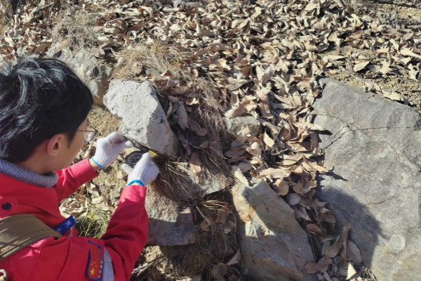 洛南縣長嶺鉀長石礦核實(shí)項(xiàng)目地質(zhì)修測人員在測產(chǎn)狀