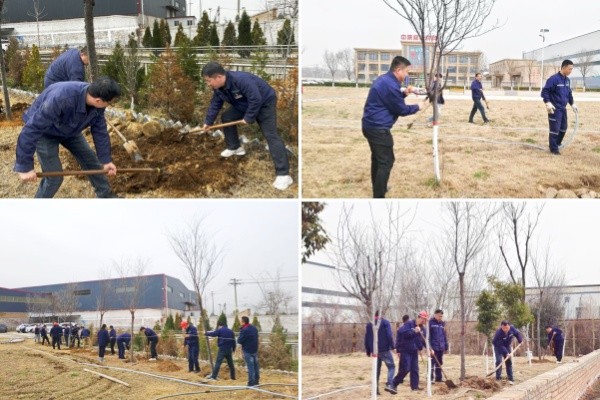植樹現(xiàn)場(chǎng),大家分工明確,配合默契,有的職工持線對(duì)標(biāo)、手扶樹苗,有的揮鍬培土、給新栽樹苗澆水,志愿者們齊心協(xié)力,認(rèn)真栽植下每一棵樹苗,植樹現(xiàn)場(chǎng)呈現(xiàn)出一片熱火朝天的勞動(dòng)景象,新材料公司廠區(qū)環(huán)境在新栽植樹苗的映襯下,煥發(fā)出蓬勃的生機(jī)與活力,不僅營(yíng)造了更加宜人的工作氛圍,也彰顯著新材料公司對(duì)綠色發(fā)展理念的積極踐行。