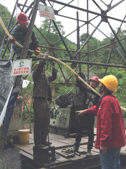 項(xiàng)目經(jīng)理劉連友和機(jī)長(zhǎng)王文忠檢查了周邊作業(yè)安全環(huán)境,查看了機(jī)臺(tái)上的螺絲是否松動(dòng),機(jī)械運(yùn)轉(zhuǎn)是否正常。劉經(jīng)理叮囑大家一定要注意安全。是呀,在這里如若漠視了安全,那么一切都將歸零。要提巖心了,卸開(kāi)巖心管、倒出巖心、放置另一個(gè)巖心管、開(kāi)鉆等過(guò)程有條不紊。伴隨一陣機(jī)器轟鳴聲,又一次取巖心工作開(kāi)始了??粗且粡垙埬贻p的面孔,二十多歲的大小伙子,稚嫩又滿是堅(jiān)毅的臉上,流露著靦腆卻又老成、自信的神情。在這樣的青春年華,有人流連都市的燈紅酒綠;有人躺在溫暖的床上,做著一夜成名的春秋大夢(mèng);而他們,我眼前這群少年老成的年輕人,在這山清水秀的大山里揮灑著汗水,奉獻(xiàn)著他們的青春年華。