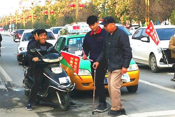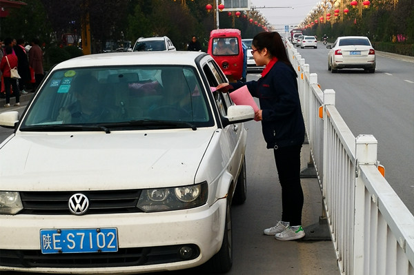 相伴在初冬溫暖的陽光下,志愿者們到達(dá)潼關(guān)縣和平路與北環(huán)路十字路口,在北環(huán)路什字崗位值班交警蔣建剛同志的認(rèn)真指導(dǎo)下,志愿者向斑馬線前紅燈等候的機(jī)動(dòng)車司機(jī)發(fā)放“車讓人”倡議書及宣傳折頁,向非機(jī)動(dòng)車駕駛員講解文明交通“車讓人”標(biāo)準(zhǔn),同時(shí),還提醒行人文明出行,文明禮讓。
