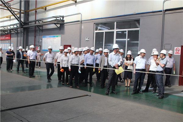 王強代表公司對潼關縣人大代表一行的到來表示誠摯歡迎,并帶領參觀了氧化鉬車間、鉬鐵車間、硫酸生產車間及中控室,他簡要介紹了中陜核工業(yè)集團公司和二二四大隊企業(yè)概況,就鉬業(yè)公司企業(yè)建設、企業(yè)優(yōu)勢、設備工藝、產品貿易、市場前景、后期規(guī)劃等情況做了全面介紹。代表們充分了解后,對集團公司、二二四大隊高瞻遠矚的轉型定位給予肯定,對鉬業(yè)公司2萬噸/年鉬深加工項目先進的生產工藝、一流的生產設備及廣闊的市場潛力表示贊許。