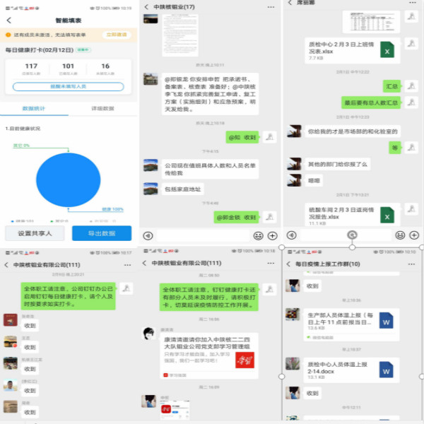 彈性復(fù)工,推進工作。公司全體職工在做好自身防護的同時,利用釘釘遠(yuǎn)程辦公,及時開展網(wǎng)絡(luò)審批各項工作;推出了全體職工每日釘釘健康打卡新措施,確保全體職工生命和健康安全;充分利用公司網(wǎng)站、微信公眾號、職工微信群、部門(車間)管理群、疫情每日上報工作群、各級疫情防控文件領(lǐng)學(xué)等線上媒體及工作手段,積極宣貫疫情防控知識,及時上報防控情況,杜絕造謠、傳謠,認(rèn)真做好疫情防控每日上報及日常工作。