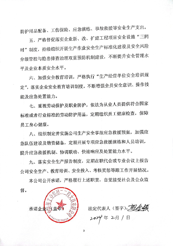中陜核工業(yè)集團二二四大隊有限公司安全生產(chǎn)承諾書