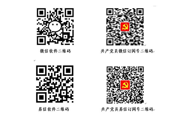 附件1 訂閱共產(chǎn)黨員微信、共產(chǎn)黨員易信說明 1.下載微信或易信軟件。打開手機網(wǎng)絡(luò)瀏覽器,輸入weixin.qq.com/d,下載安裝微信軟件;輸入http://yixin.im,下載安裝易信軟件。 2.申請個人賬號。打開微信或易信軟件,根據(jù)提示信息申請注冊個人賬號。 3.訂閱“共產(chǎn)黨員微信”或“共產(chǎn)黨員易信”。登錄微信或易信軟件,點擊“添加朋友”,搜索“gcdyweixin”“共產(chǎn)黨員”或“gcdyyx”“共產(chǎn)黨員易信”,點擊“關(guān)注”,完成訂閱。 4.閱讀“共產(chǎn)黨員微信”或“共產(chǎn)黨員易信”內(nèi)容。登錄微信或易信軟件,點擊“訂閱號”,閱讀共產(chǎn)黨員微信或共產(chǎn)黨員易信內(nèi)容。 用手機上的二維碼掃描軟件拍攝下列二維碼,可直接下載安裝微信、易信軟件,訂閱共產(chǎn)黨員微信、易信
