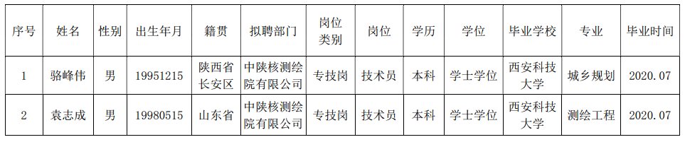 公司擬聘人員名單公示